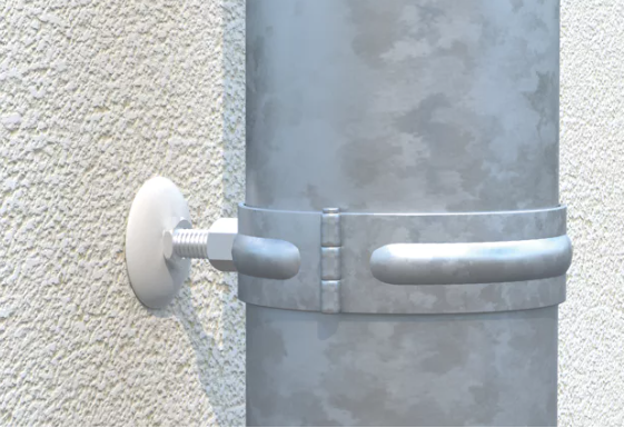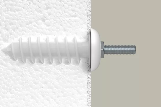 The fischer insulation fixing FID-R is a fixing for mounting rainwater downpipes without thermal bridges in external thermal insulation composite system (ETICS) with a thickness of 100 mm. When installed with a cordless screwdriver, the spiral thread taps itself in the insulation board. The zinc flake coating of the threaded stud provides corrosion protection. The included white covering rosette protects again humidity.